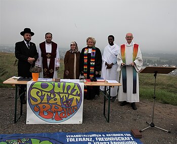 Zusammen mit Vertretern des Stadtbezirks und mit Religionsvertretern der jüdischen, koptisch-orthodoxen, eritreisch-orthodoxen und muslimischen Gemeinden in Dortmund setzen wir damit ein gemeinsames Zeichen für Frieden und Toleranz und gegen Rechts - bunt statt braun!