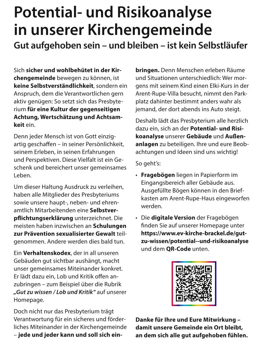 Umfrage zu den Potentialen und Risiken in der Ev. Kirchengemeinde Brackel